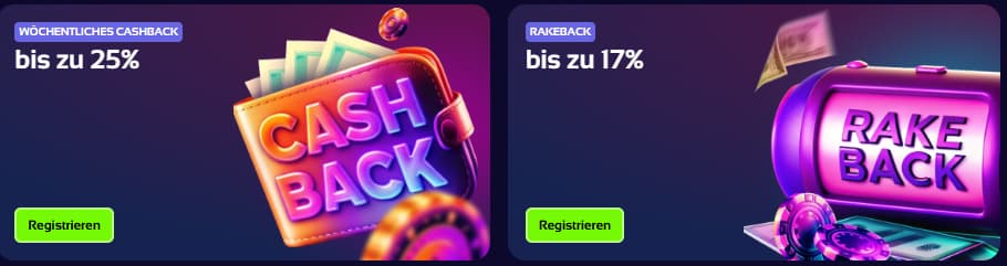 Für viele Spieler ist Cashback die „ehrlichere“ Aktion, weil es nicht wie Freispiele an ein bestimmtes Spiel gebunden sein muss. Auf der Promotions-Seite siehst du WÖCHENTLICHES CASHBACK bis zu 25%. Genau hier zeigt sich auch unser Ansatz: Aktionen sind sichtbar in der Promo-Übersicht und nicht irgendwo versteckt.